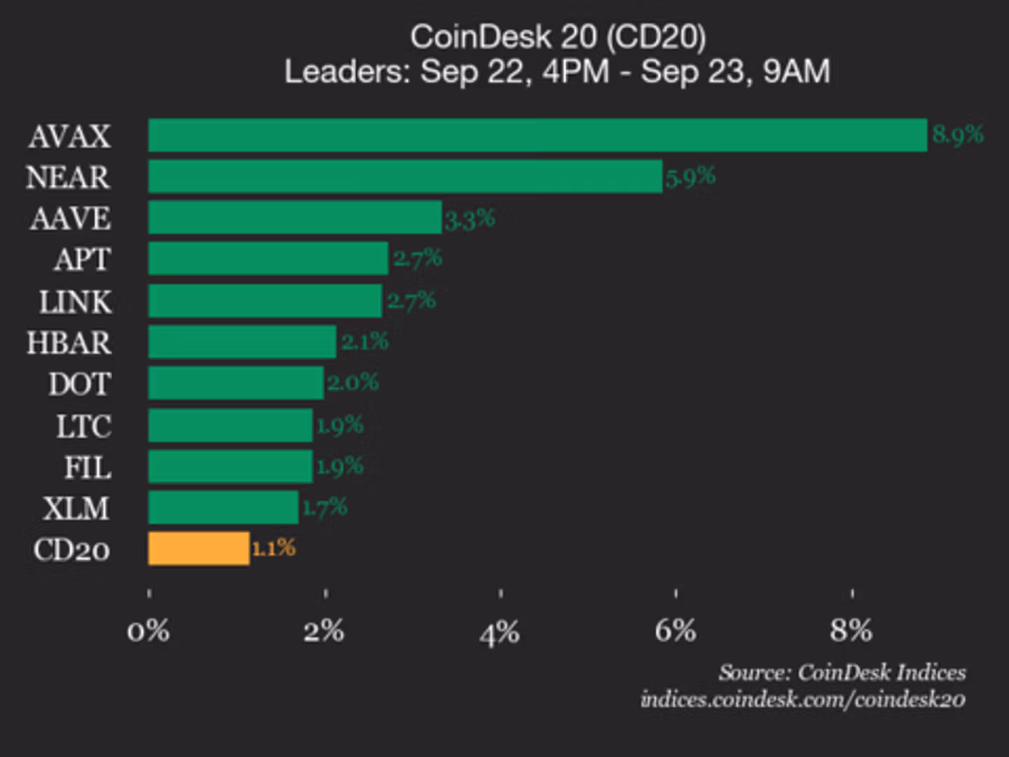 CoinDesk 20 Index Up 1.1% with NEAR Leading Gains at 6.7%