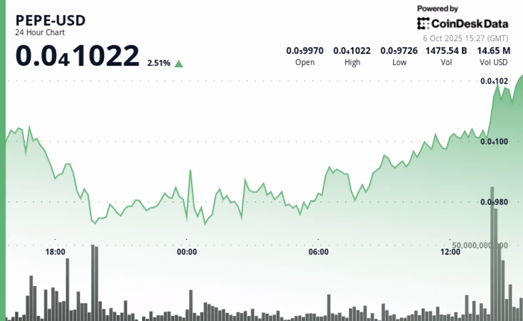 Meme-inspired cryptocurrency PEPE surged over 2.5% in the last 24 hours, outperforming the CoinDesk Memecoin Index, which rose by 2.24%. The...