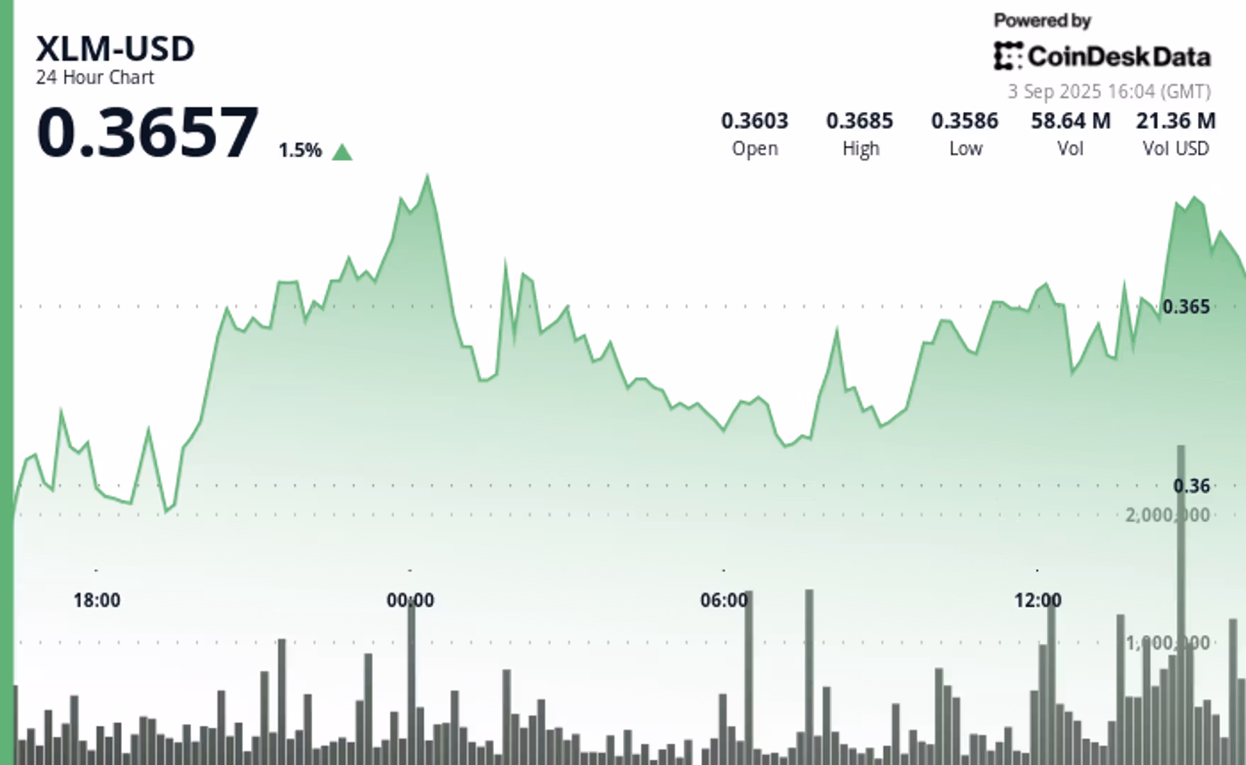 Stellar’s XLM token showed resilience, rising from $0.36 to a peak of $0.37 before closing back at $0.36. Key points include: