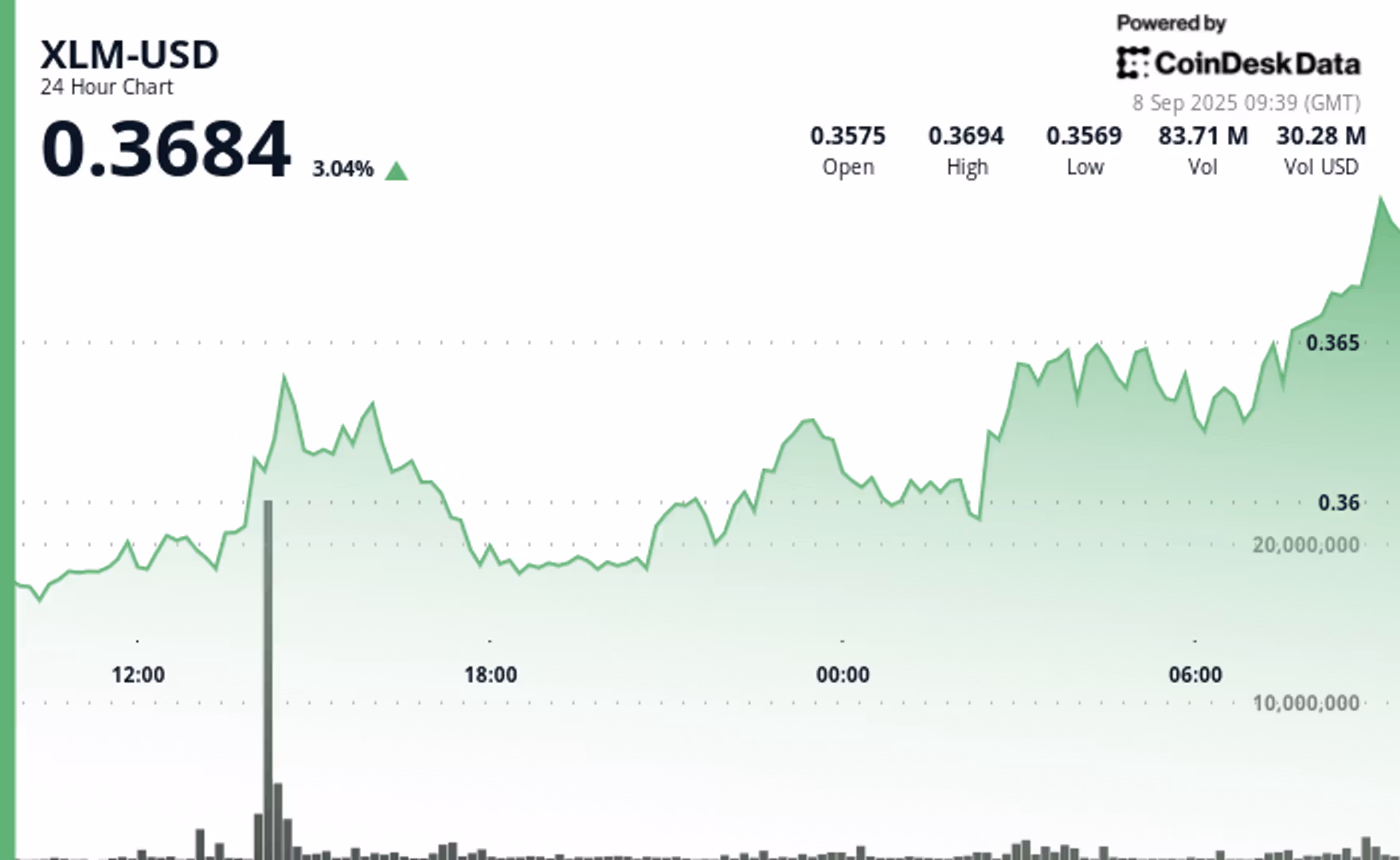 Stellar's native token, XLM, gained 2.32% from September 7 at 09:00 to September 8 at 08:00, rising from $0.36 to $0.37. The trading range was...
