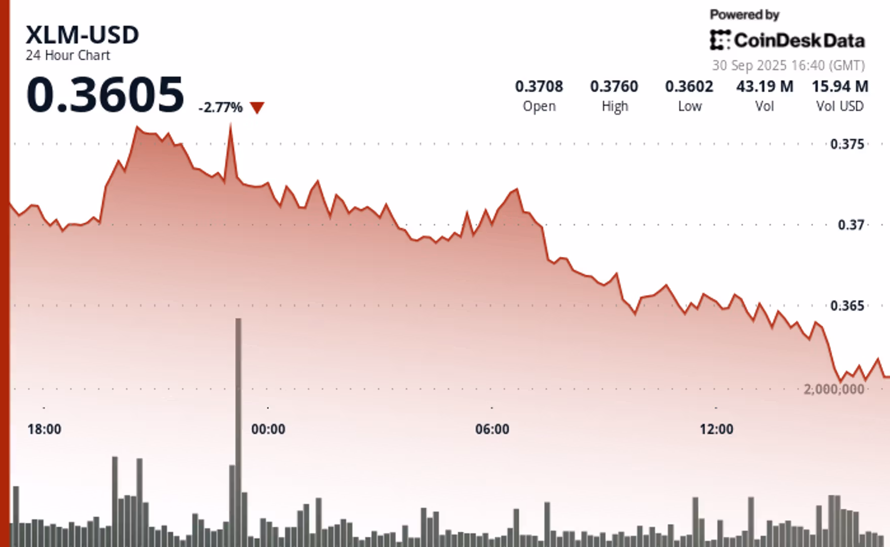 Stellar's XLM token experienced a 4% decline over 23 hours, from $0.38 to $0.36, between September 29 and 30. The decrease occurred within a...