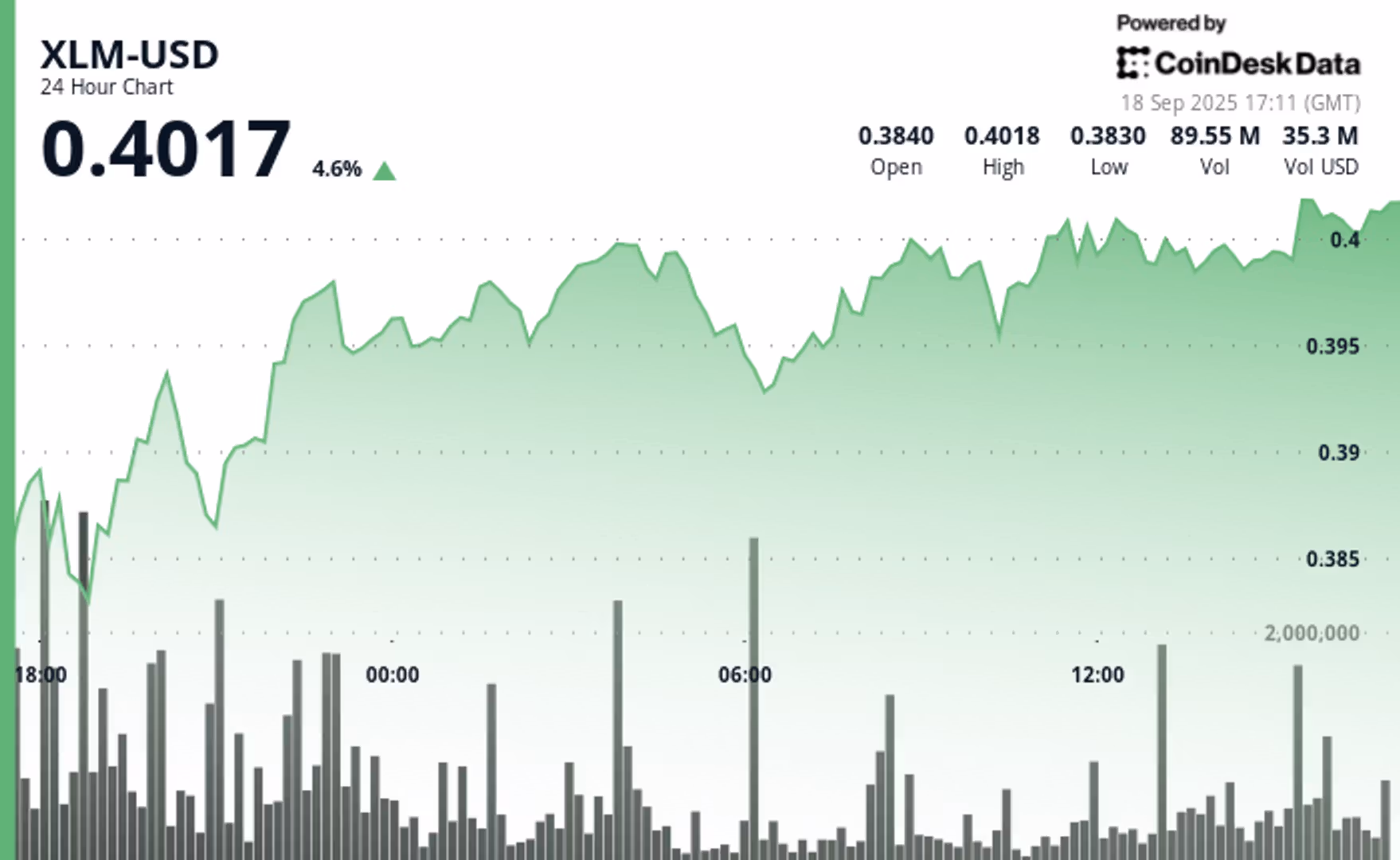 Stellar's XLM showed resilience during a 24-hour session from Sept. 17-18, trading within a $0.38 to $0.40 range.