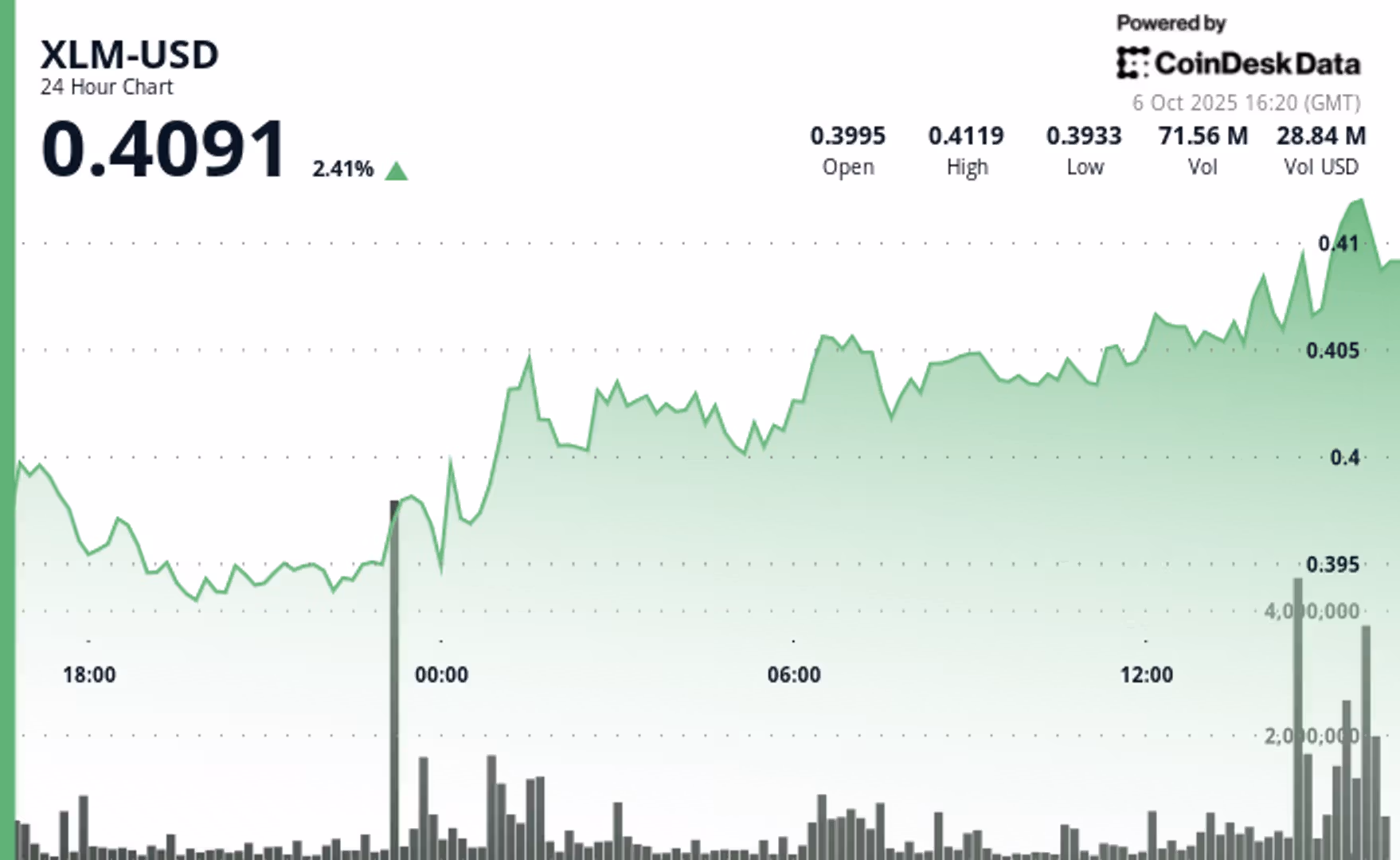Stellar Lumens (XLM) increased by 3% over a 23-hour period ending October 6, with its price moving from $0.40 to $0.41, as institutional trading...
