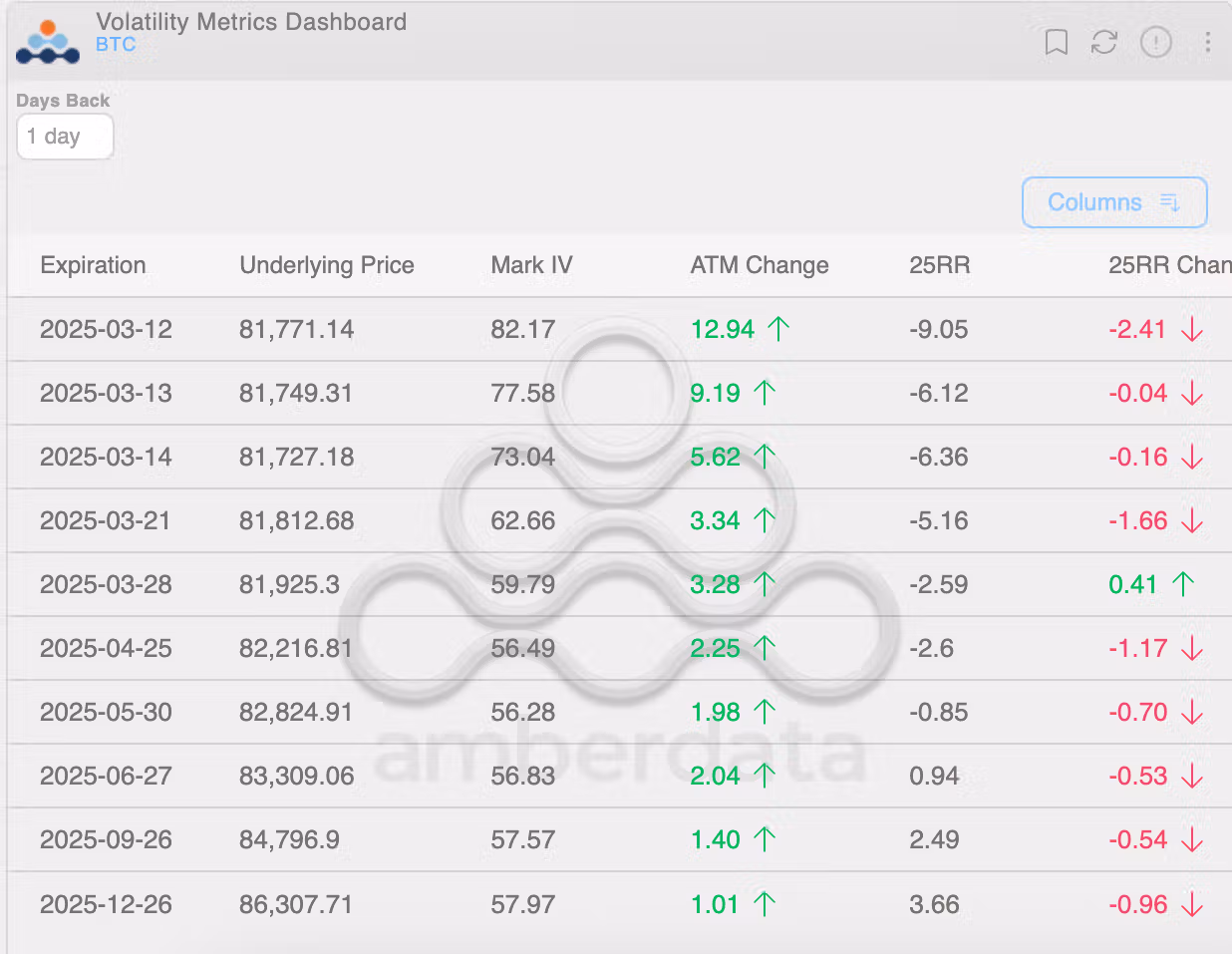 - The 25-delta risk reversals show negative bias for protective put options, indicating concerns over further price declines.
