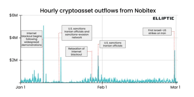 - Blockchain data indicated a rapid increase in outflows, with wallets linked to Nobitex sending millions of dollars within minutes of the strike.