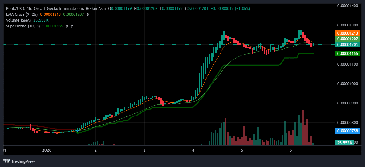 - PEPE gains 66.89%, rising from $0.0000040 to $0.0000069 - BONK increases by 54.6% over the same period - PEPE's market cap reaches $2.86 billion, ranking 49th in cryptocurrencies - BONK peaks at $0.00001203 with a trading volume of $540 million - James Wynn holds a $3.11 million PEPE position with 212% margin return - Separate trader gains over $2 million with a 3x long position on PEPE - Analyst NFTdavie targets $0.000010 for PEPE following resistance bounce - Total crypto market capitalization hits $3.29 trillion - Meme coin sector market cap increases to $52.77 billion - Dogecoin rises 20.9%, Shiba Inu up 29% in one week