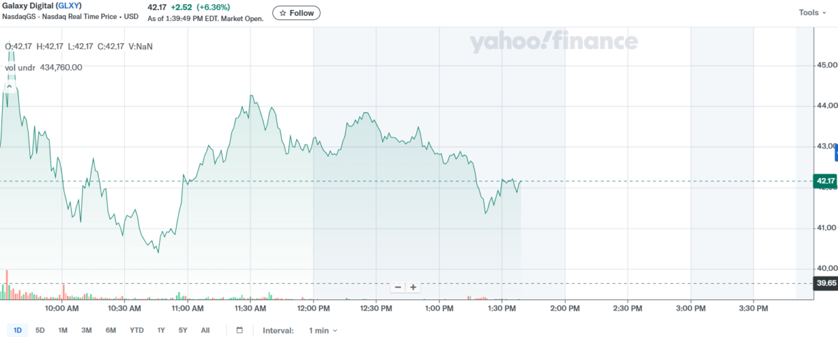 - Galaxy Digital reports $505M Q3 net income, 1,546% increase from Q2 - Diluted earnings per share reach $1.01 - Q3 adjusted EBITDA at $629 million - Digital asset volumes up 140% contributing to profit surge - Global Markets segment records $295M in adjusted gross profit - Executes $9 billion Bitcoin sale for client - Total platform assets hit $17 billion; $8.8B in management, $6.6B staked - $460M equity investment supports operations and Helios expansion - Helios Data Center fully leased to CoreWeave, operational by 2026 - Asset management and infrastructure solutions yield $23M adjusted gross profit - New digital asset mandates add $4.5B in assets - Shares rise over 6% after Q3 report, trading volume at 16,874,909 shares - Galaxy Digital's year-to-date performance shows an 82.55% increase