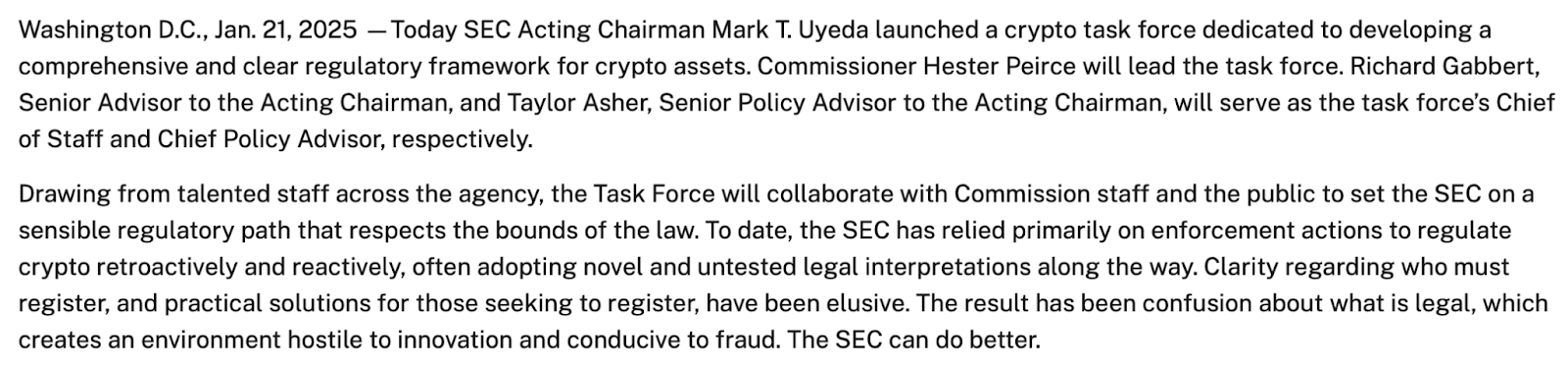 SEC Establishes New Crypto Task Force to Enhance Regulatory Guidance