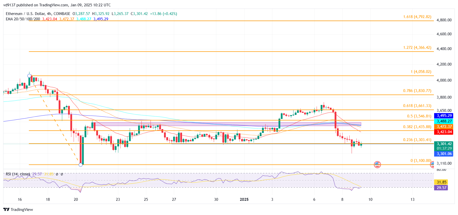 Ethereum Price Holds at $3,300 Amid Potential Retest to $2,900
