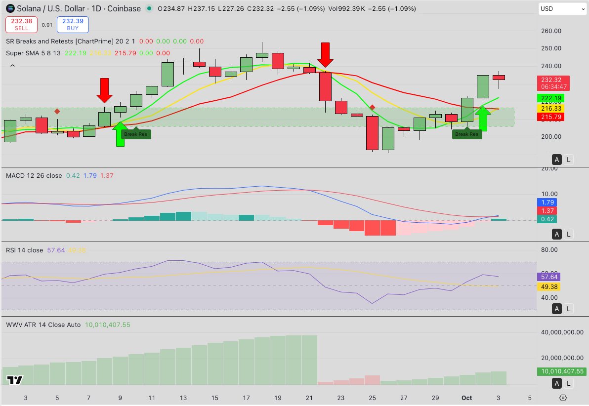 Solana (SOL) price gained 3% on October 3, after two days of 6% gains each. The price met resistance below $240 due to supply pressures from...