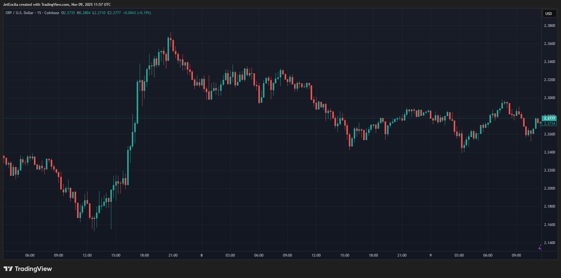 - XRP currently trades at $2.27, down by 1.6% in 24 hours and 9.2% over the past week.