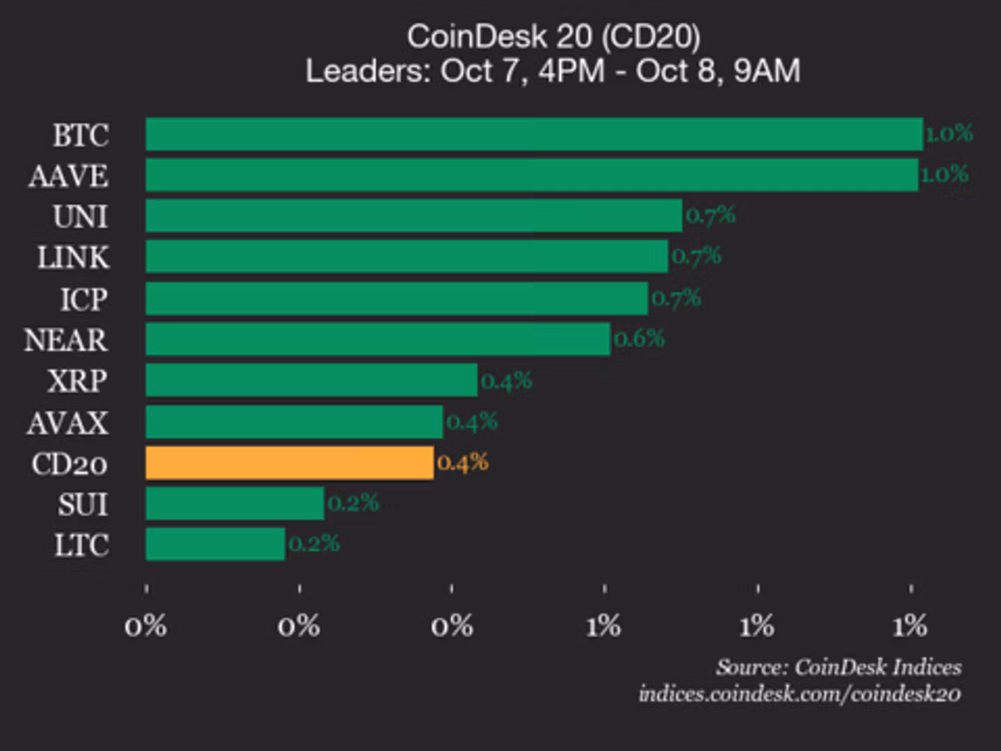 Индекс CoinDesk 20 вырос на 0,4% благодаря Bitcoin и AAVE
