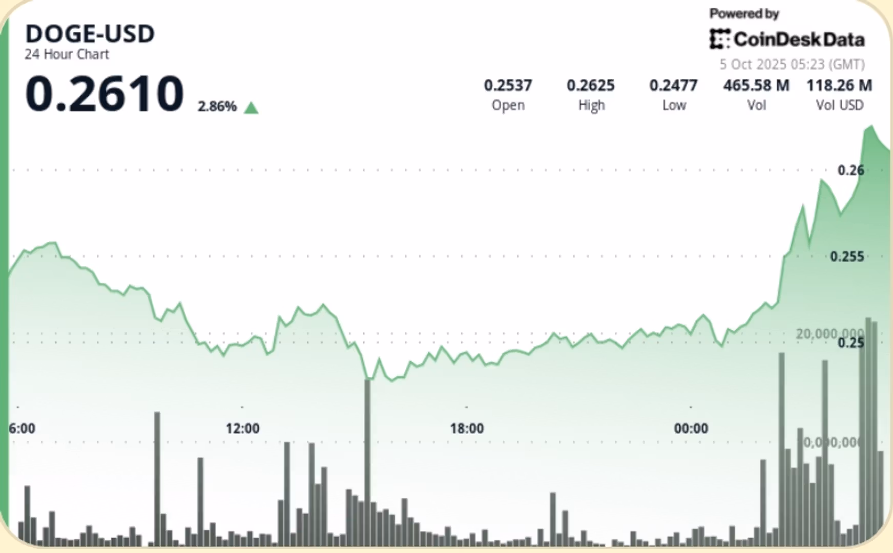 Dogecoin демонстрирует новую динамику, вернувшись к уровню выше $0,26.
