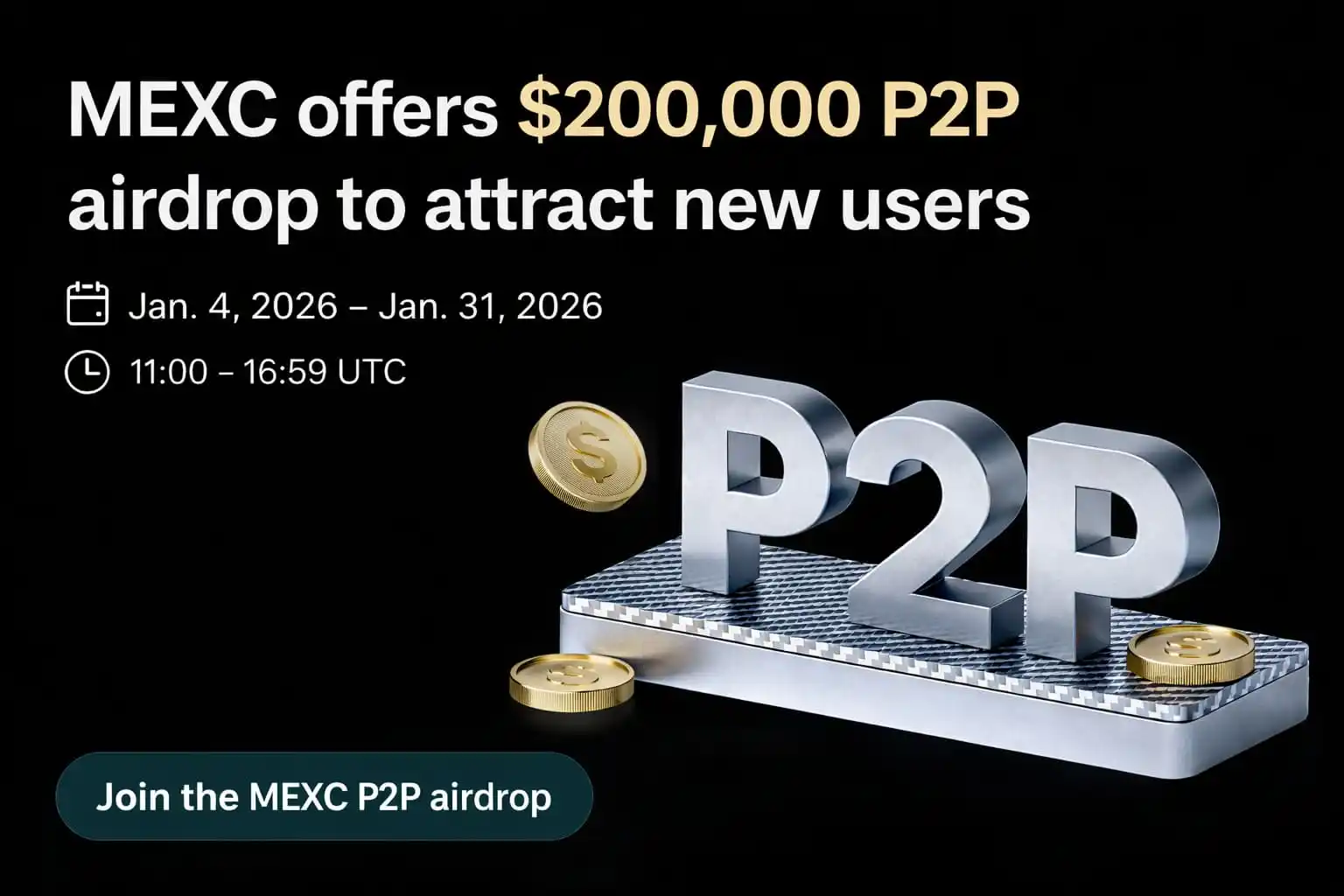 - MEXC проводит airdrop на сумму $200,000 для новых пользователей, впервые совершающих депозит через P2P...
