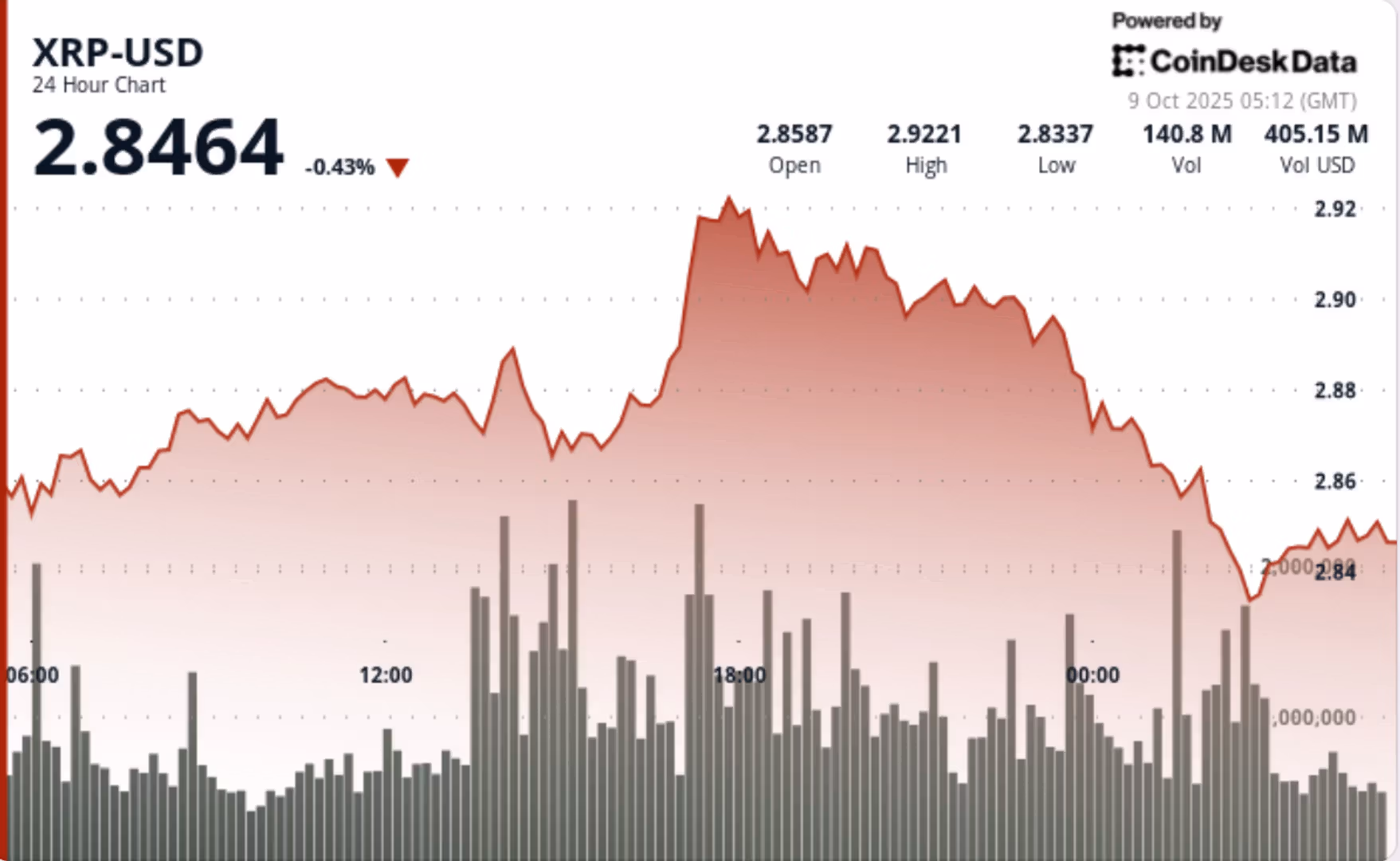Цена XRP снизилась ниже $2,90 и испытывает трудности около уровня $2,820.