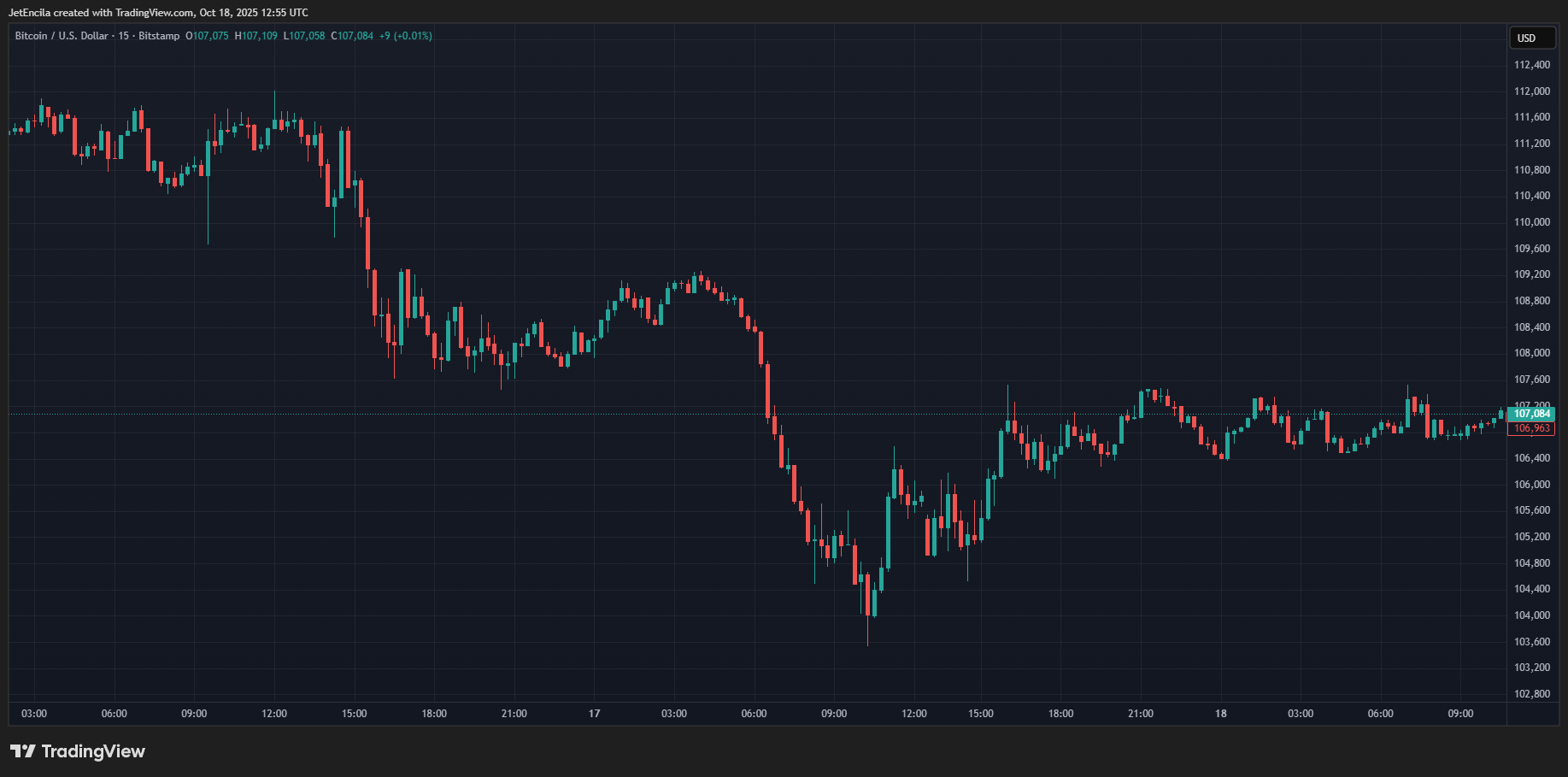 - Биткоин недавно откатился от предыдущих максимумов, торгуясь в диапазоне $106,000–$107,000 на 17 октября.