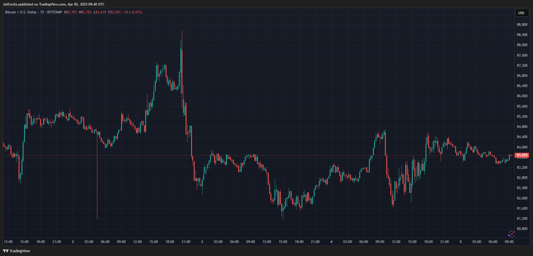 В настоящее время Биткойн торгуется по цене $83,693.