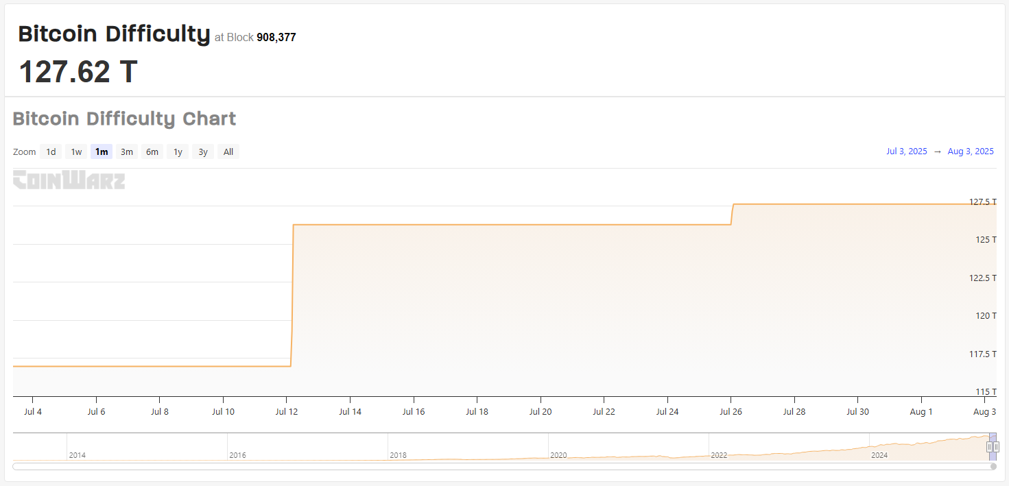 - Следующая корректировка 9 августа ожидается с понижением сложности примерно на 3% до почти 124 триллионов.
