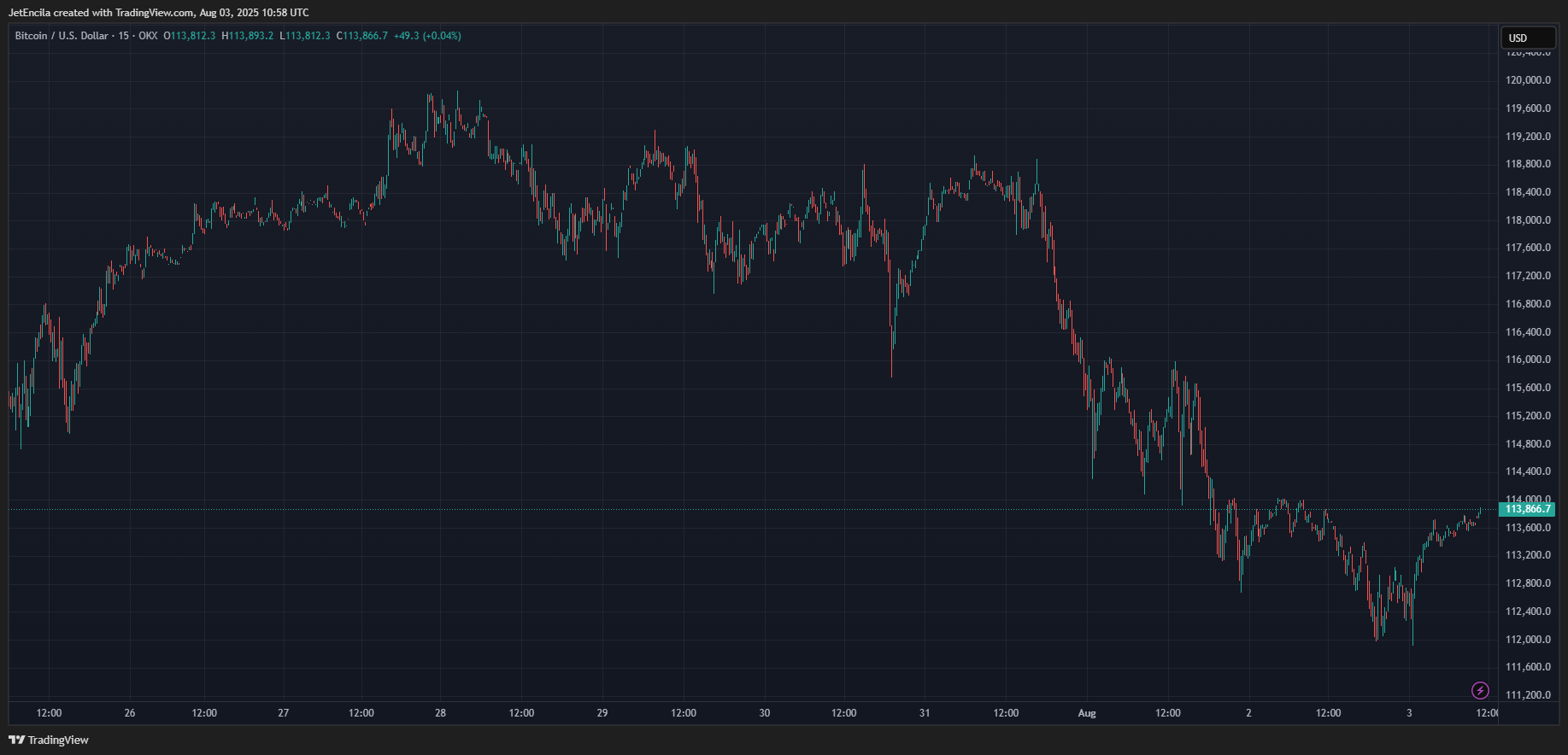 - Биткойн упал до $113,005, прежде чем восстановился до $113,250.