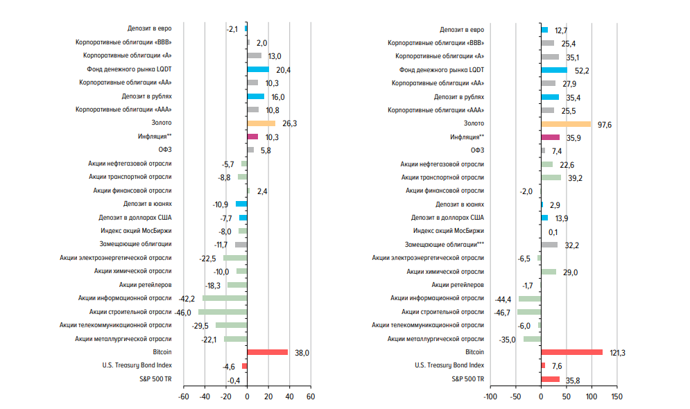 Центральный банк России сообщает, что Биткойн превзошел традиционные инвестиции в 2025 году, с доходностью около 40% за последний год. Это делает Биткойн ведущим активом по сравнению с золотом, акциями и облигациями.