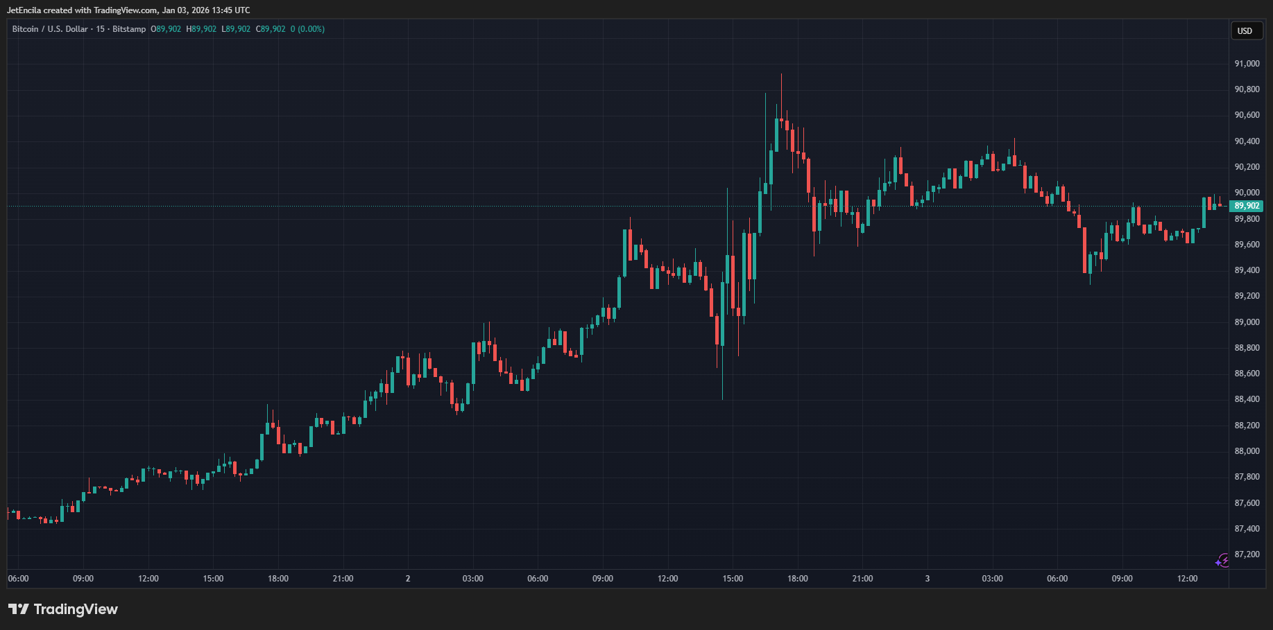 - Биткоин торгуется около $89 750, немного ниже недавнего максимума в $90 250.
