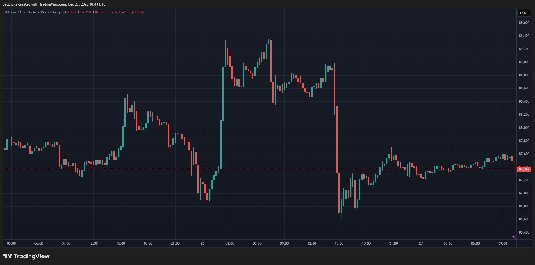 - Bitcoin торгуется по цене $87,520, что на 8 % ниже с начала года. Рыночные настроения остаются слабыми. Индекс страха и жадности криптовалют находится на уровне 20, что означает "крайний страх".