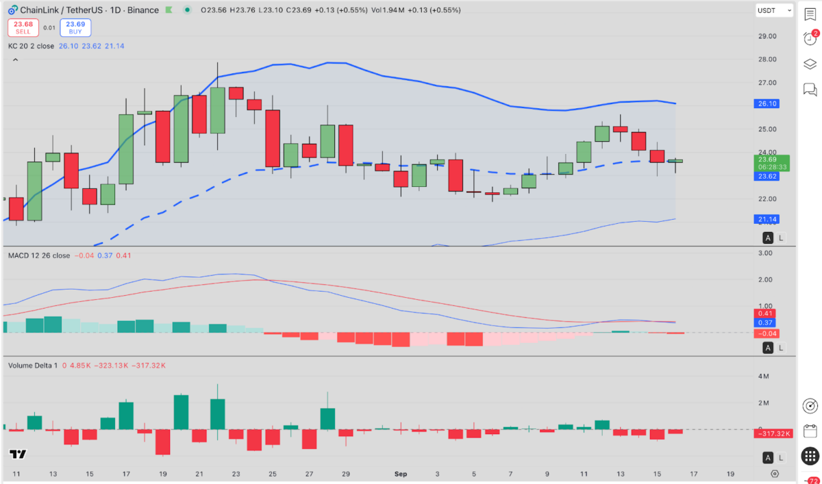 Цена Chainlink выросла на 2,7 %, торгуется выше $23,5.