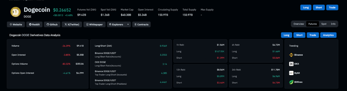 - Цена Dogecoin выросла на 1% в ожидании решения по ETF - Влияние Tesla Илона Маска на настроение рынка Dogecoin - Объем торгов фьючерсами Dogecoin упал на 26,39% до $9,41 млрд - Открытый интерес к Dogecoin снизился на 3,85% до $5,35 млрд - Предпродажа Snorter Bot собрала $3,9 млн раньше срока