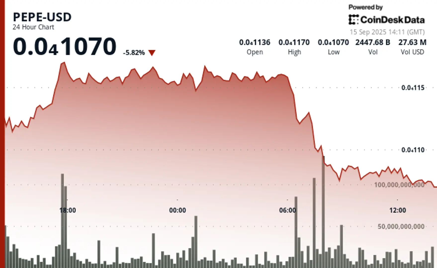 Криптовалюта PEPE, вдохновлённая мемами, упала почти на 6 % за последние 24 часа, достигнув $0,0000107. Это произошло, несмотря на накопление...