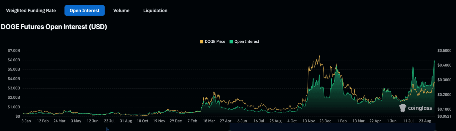 Dogecoin испытал небольшую коррекцию после достижения нового максимума, но общий импульс остаётся сильным.