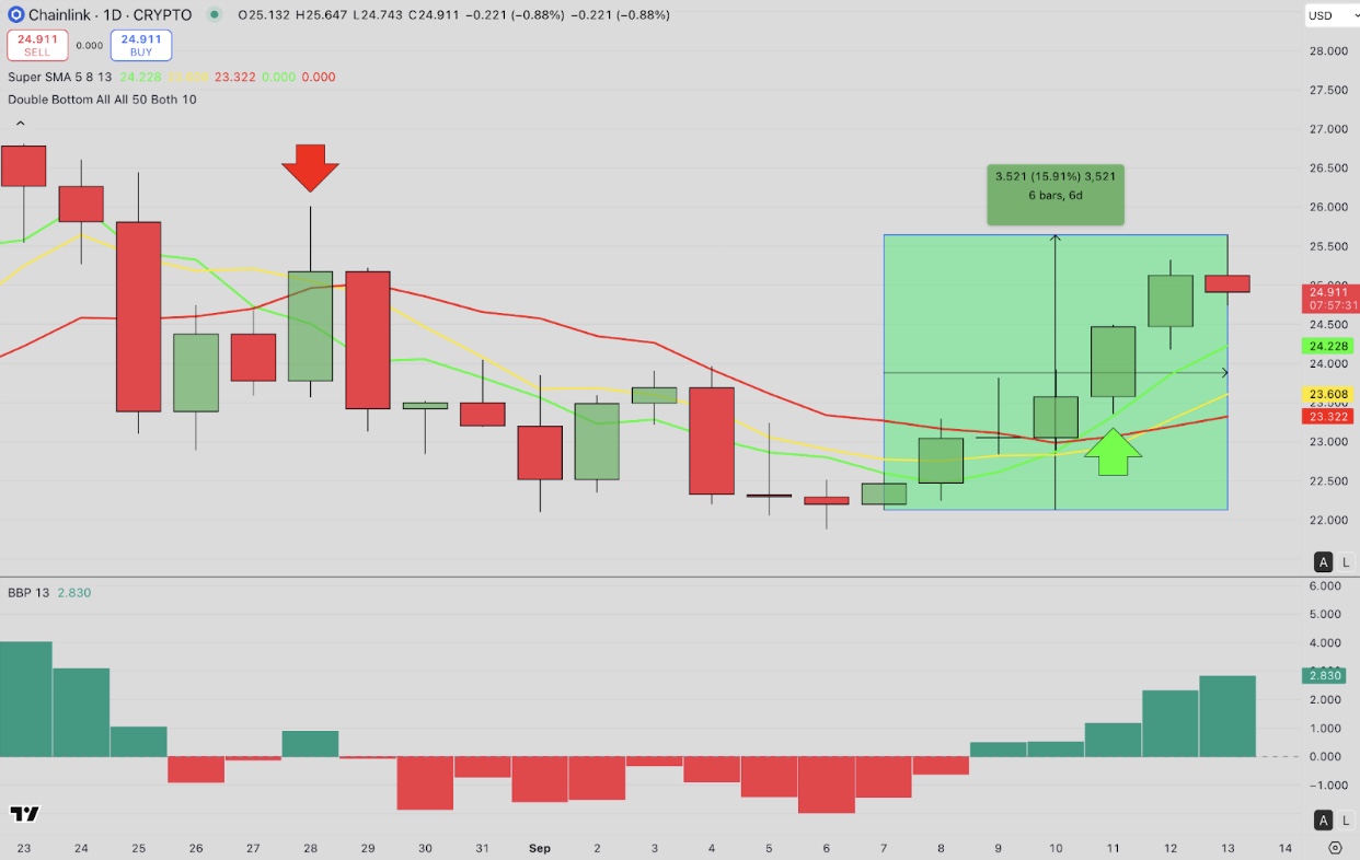 Цена Chainlink достигла $25, что составляет 15% недельного прироста.