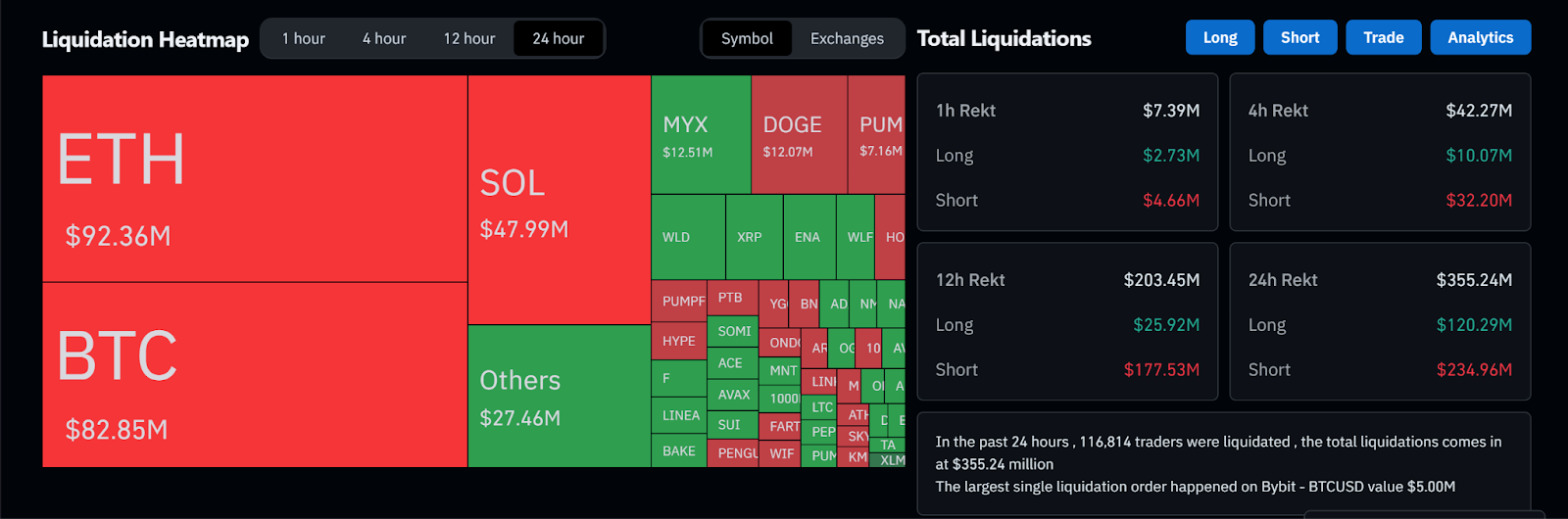 Недавний рост цены биткоина привел к ликвидациям на рынке более чем на $354 млн: $121 млн из длинных...