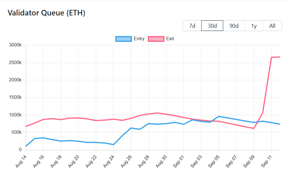 Очередь на выход валидаторов Ethereum достигла рекордных 45 дней.
