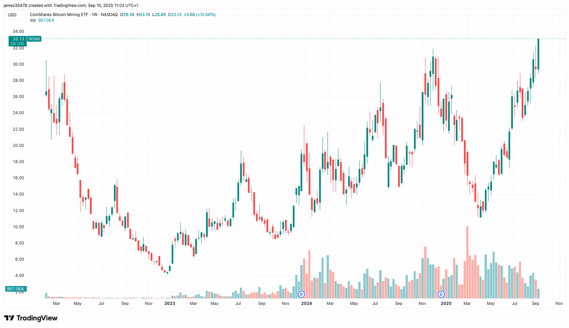 ETF на биткойн от CoinShares (WGMI) вырос на 12% до $33.13 после соглашения Nebius Group с Microsoft на поставку GPU на $17,4 миллиарда. Это...