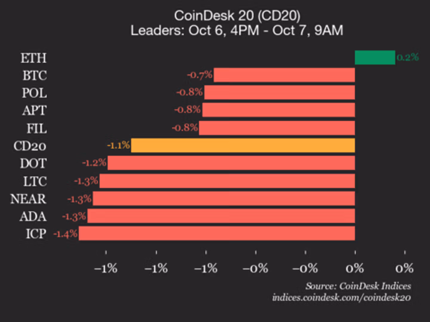 Индекс CoinDesk 20 снизился на 1,1%, UNI упал на 3,3%