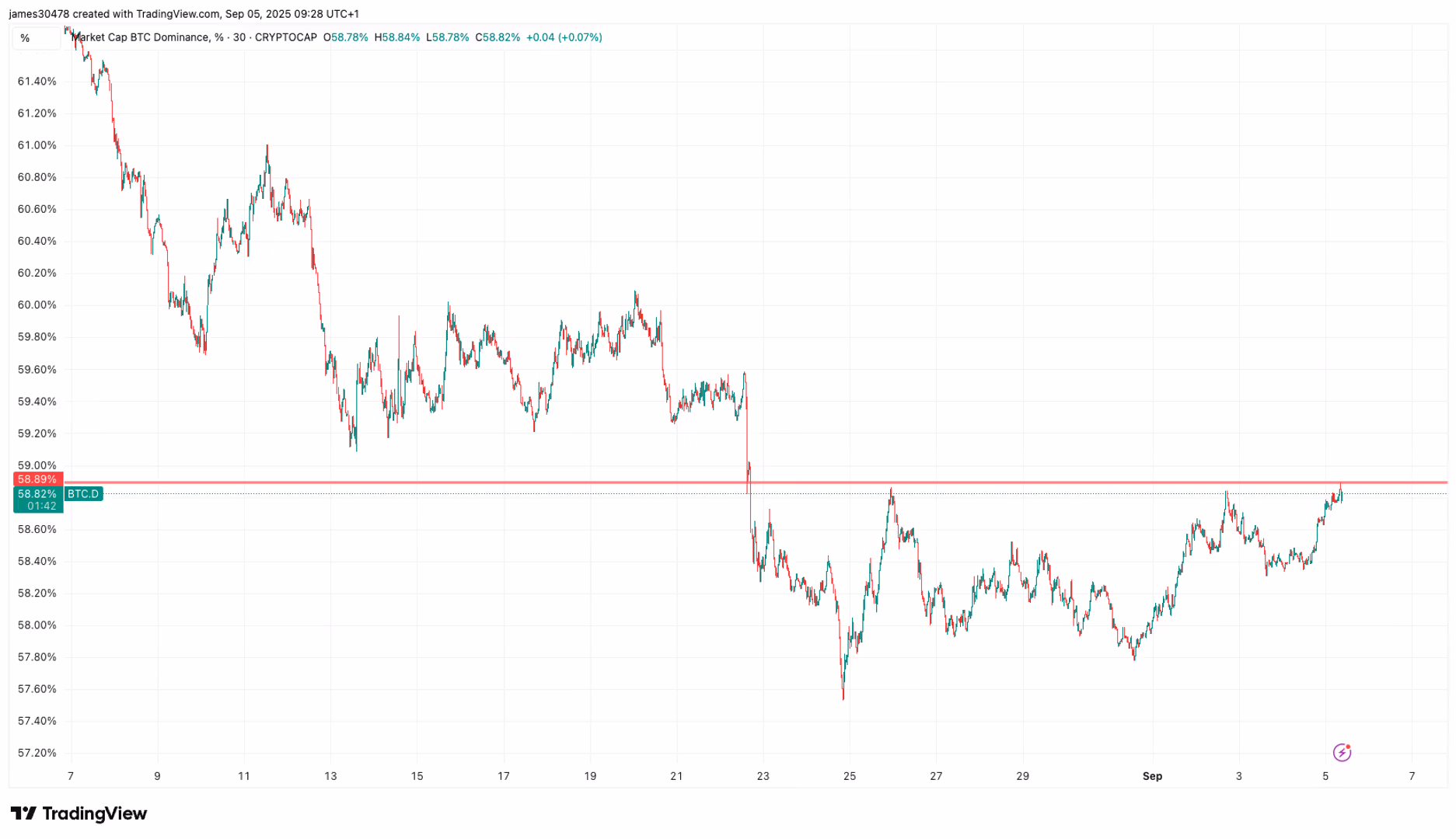 Цена Биткойна достигла $113,000 при доминировании рынка 59%