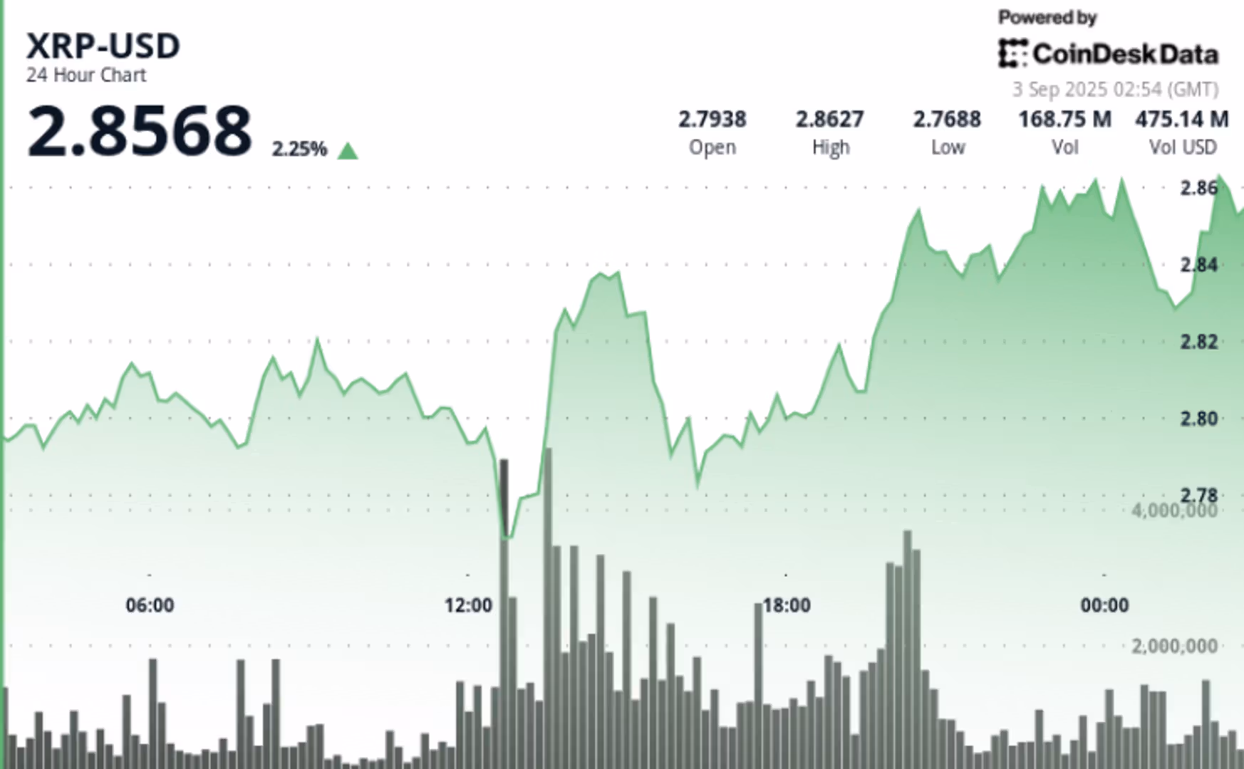 XRP показал волатильность с 2 по 3 сентября, торгуясь в диапазоне $2.76 и $2.86.
