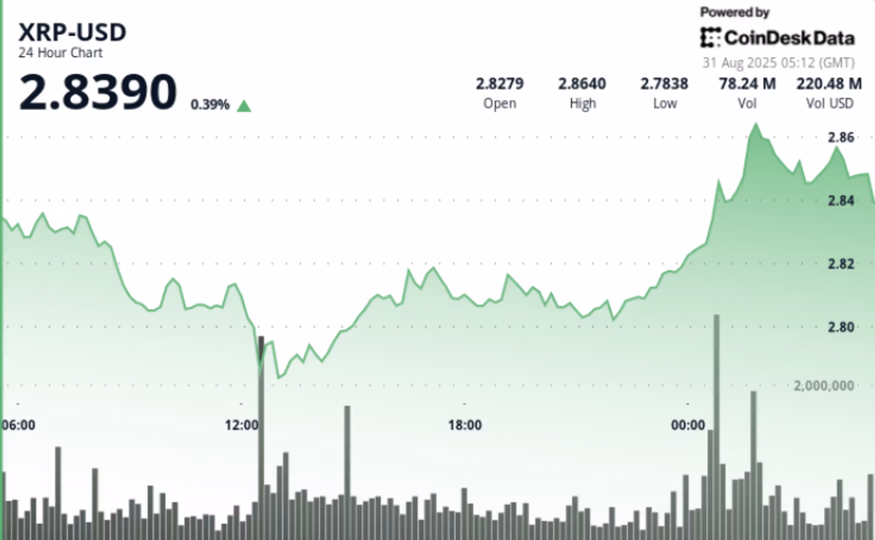 XRP упал на 4,3% с 28 по 29 августа, снизившись с $3.02 до $2.89.