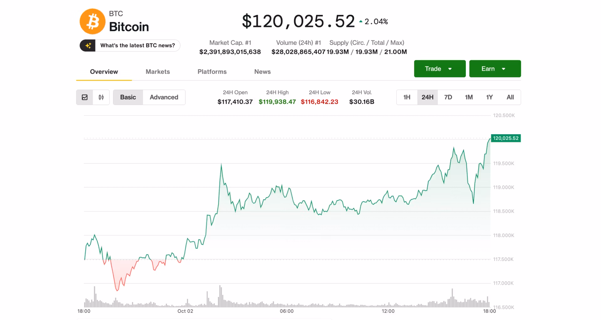Биткоин превысил $120K: трейдеры ждут роста в октябре