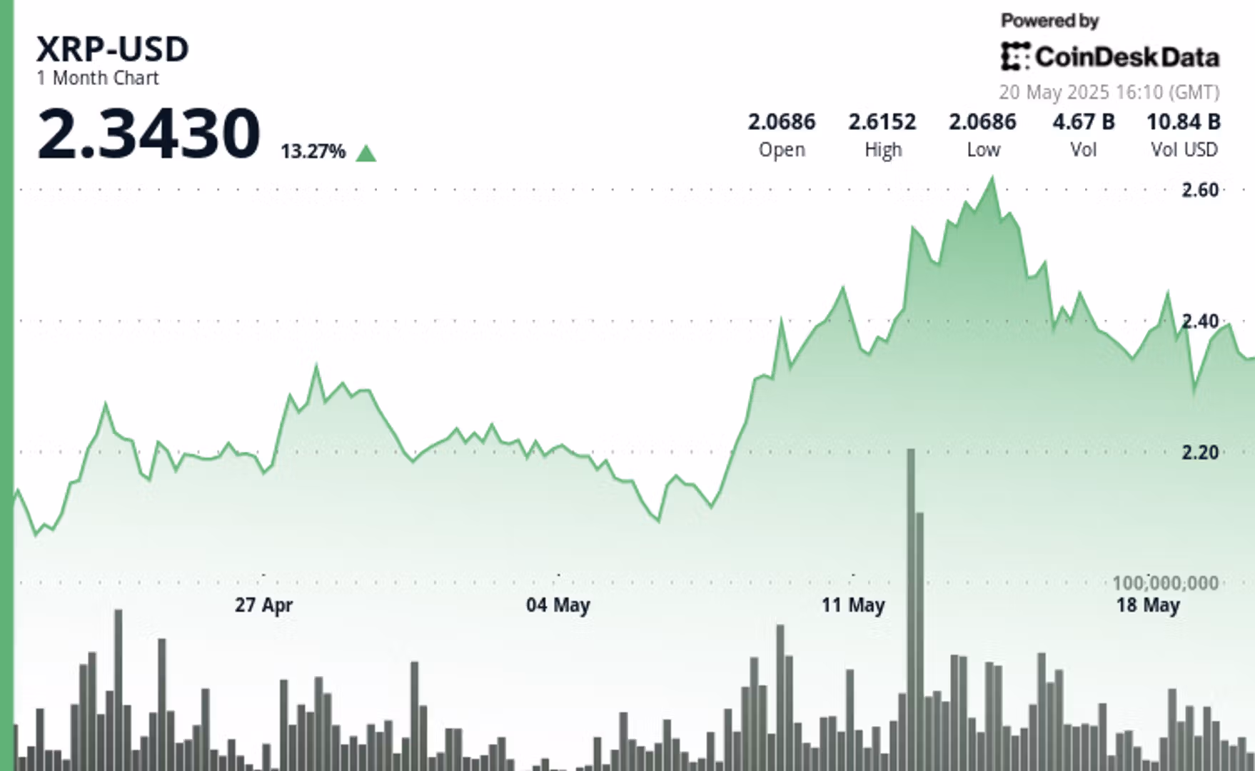 Цена XRP снижается ниже $2.40, в настоящее время торгуется около $2.350 и близка к 100-часовой простой скользящей средней.