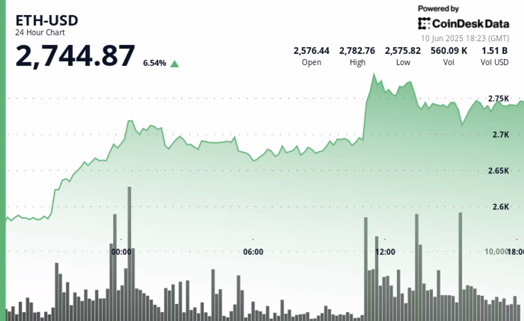Эфир поднимается выше $2,700 на фоне роста объема торгов