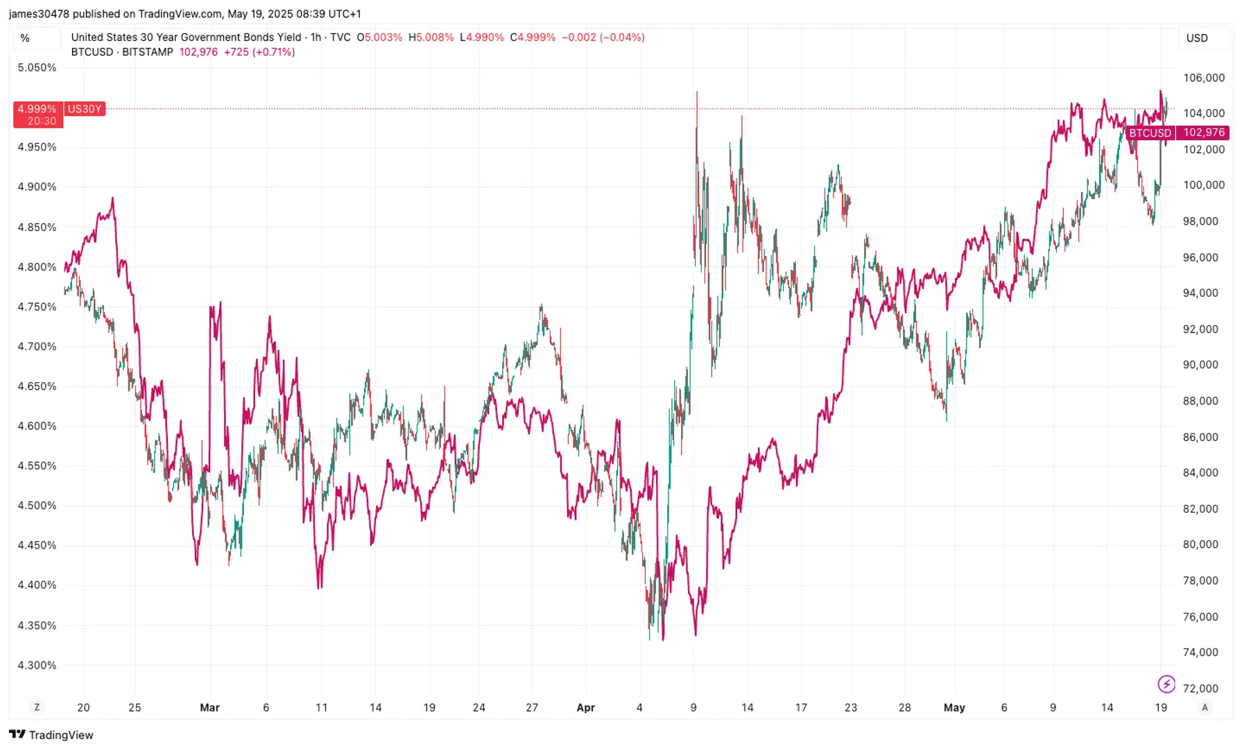 Биткойн взлетел до $107,000 и вернулся к $102,000