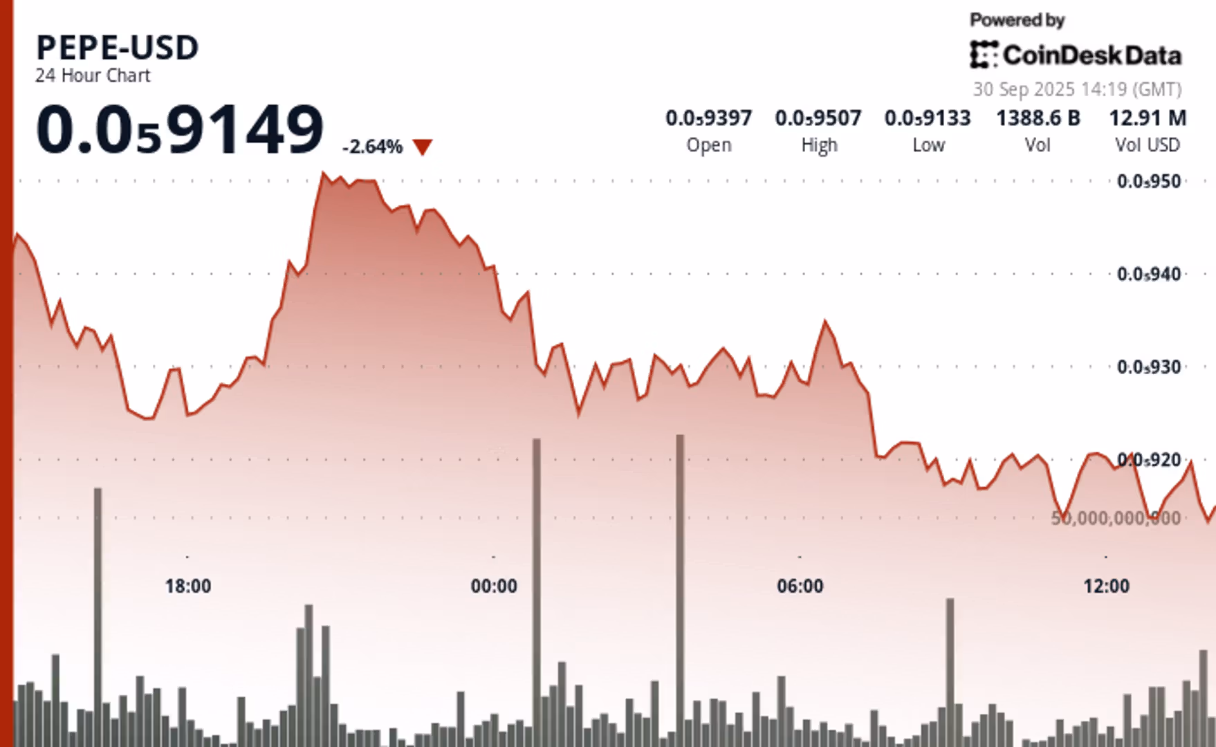 Криптовалюта PEPE, вдохновлённая мемами, снизилась на 2,6 % за последние 24 часа. Цена составила около $0,0000915. Это хуже, чем общее снижение...