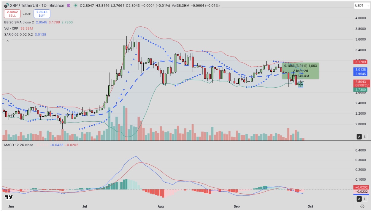 XRP демонстрирует устойчивость, торгуясь около $2,86 с приростом 3% за день на 29 сентября. С августа криптовалюта пять раз тестировала уровень...