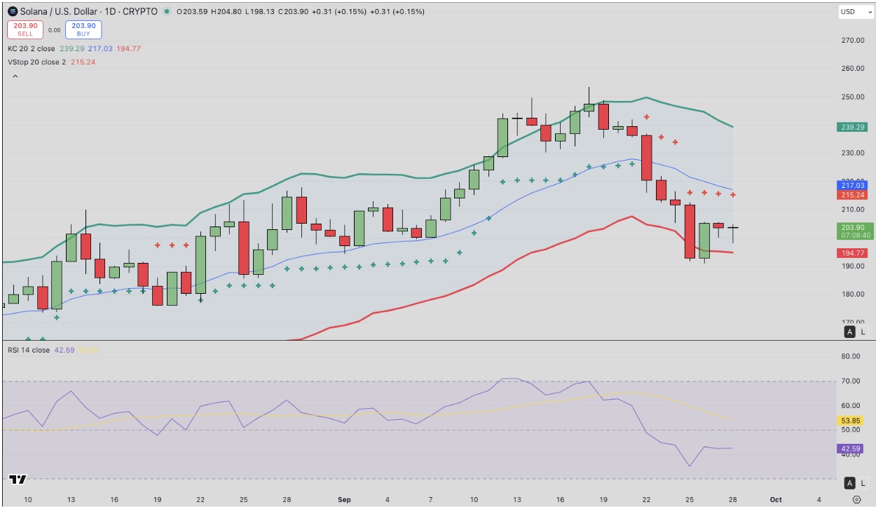 Цена Solana (SOL) удерживается выше отметки $200, несмотря на снижение объёма торгов. Основные факторы: