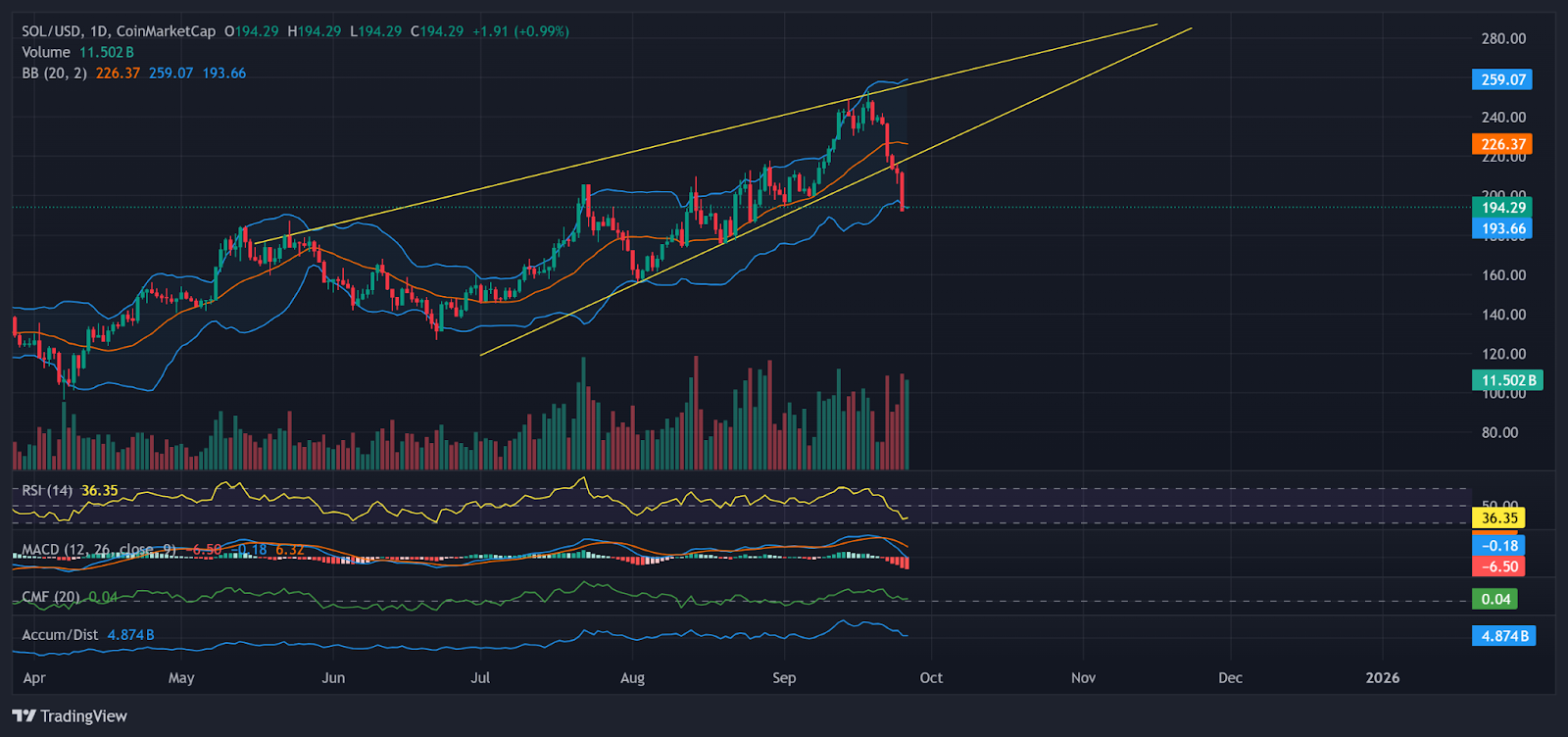 Galaxy Digital перевела 200,000 SOL на Coinbase на $39.1 млн