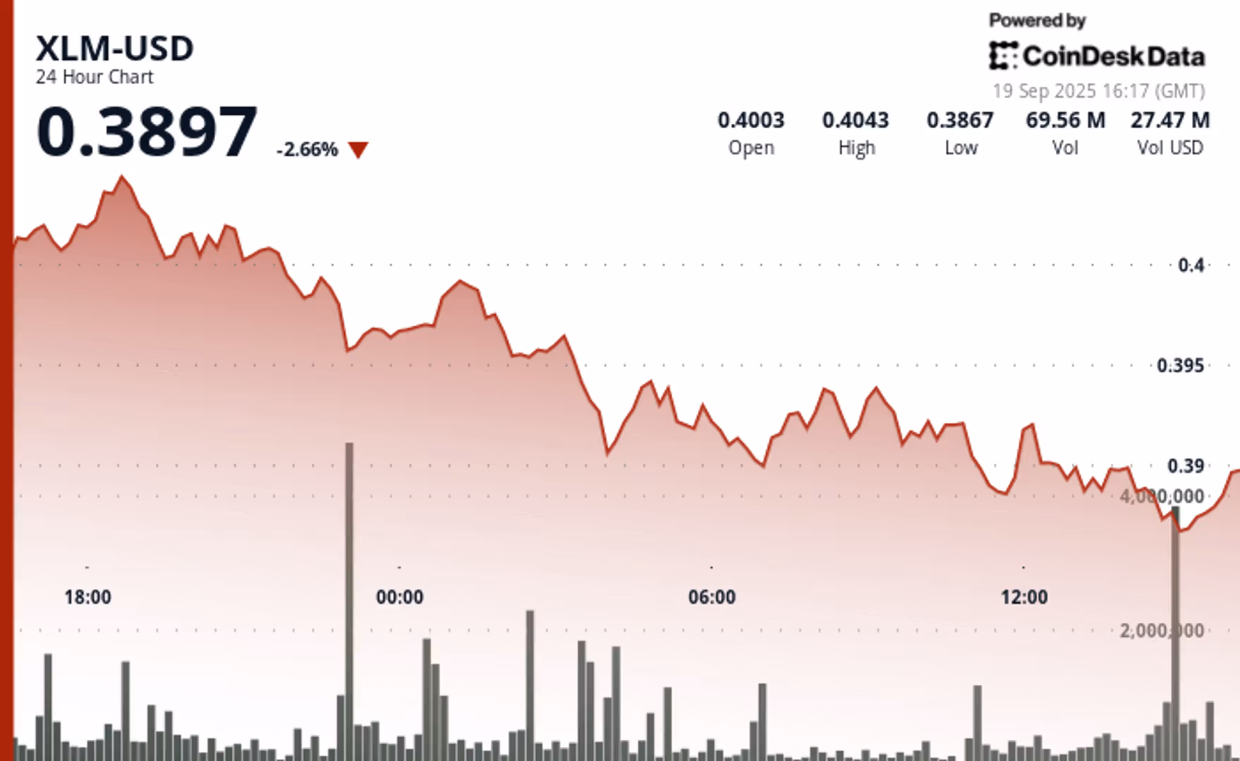 XLM снизился на 3,58 % с $0,40 до $0,39 в период с 18 по 19 сентября.