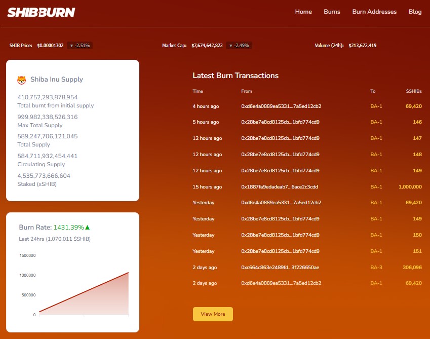 - Скорость сжигания Shiba Inu (SHIB) увеличилась на 1 431%.