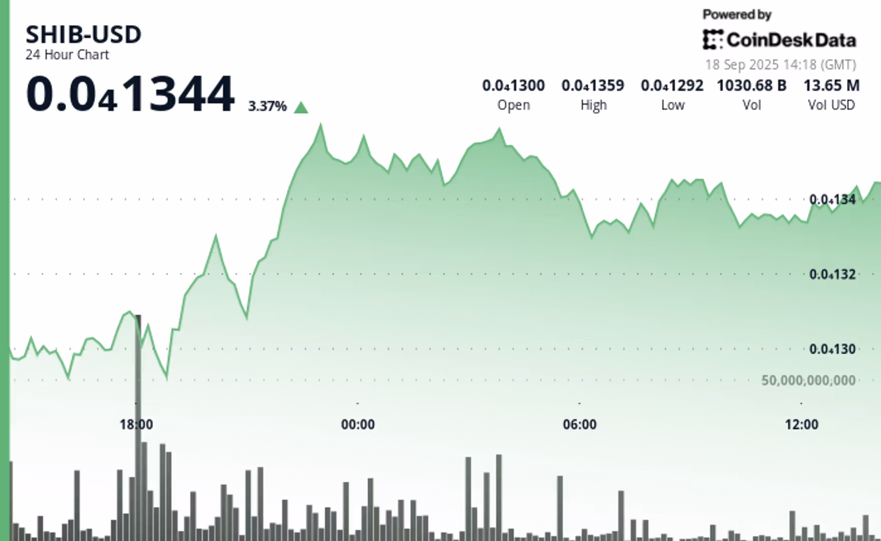 Shiba Inu (SHIB) увеличился в цене на 3 %, а объём ежедневных торгов вырос на 40 % до $277 млн на фоне общего роста крипторынка.