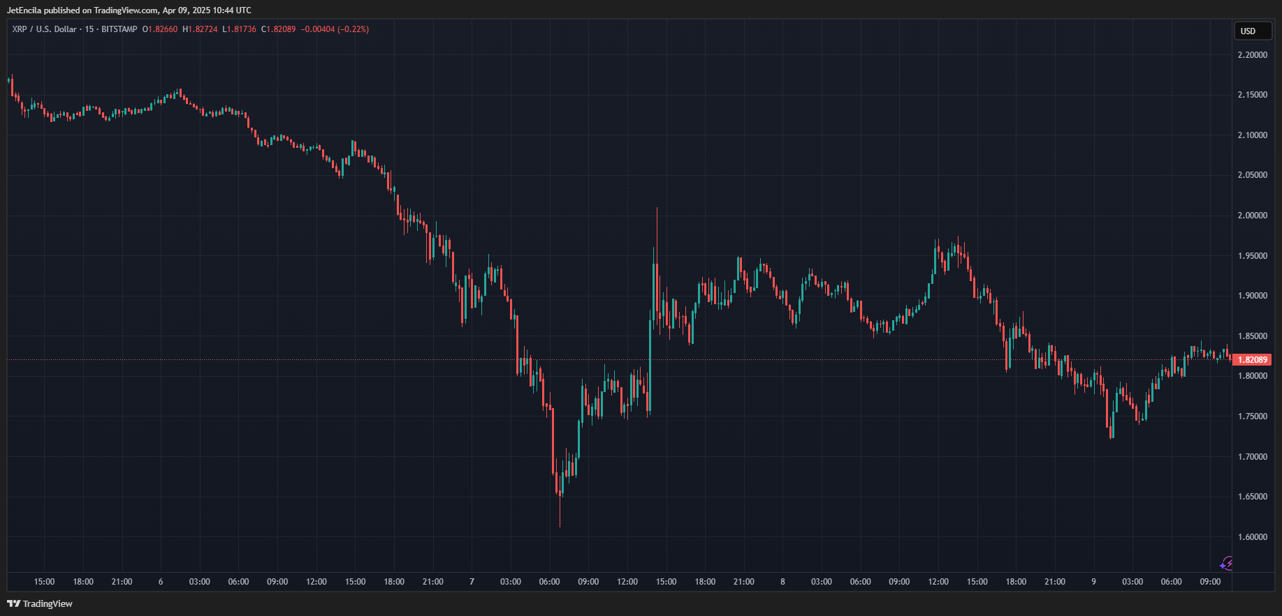 - XRP восстановился до $1.82 после падения до $1.64 7 апреля, что составило 10% роста.